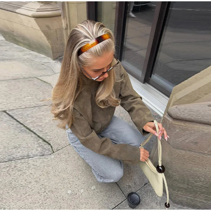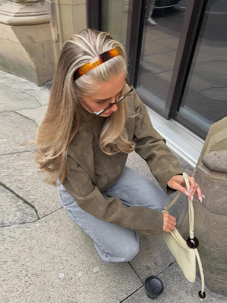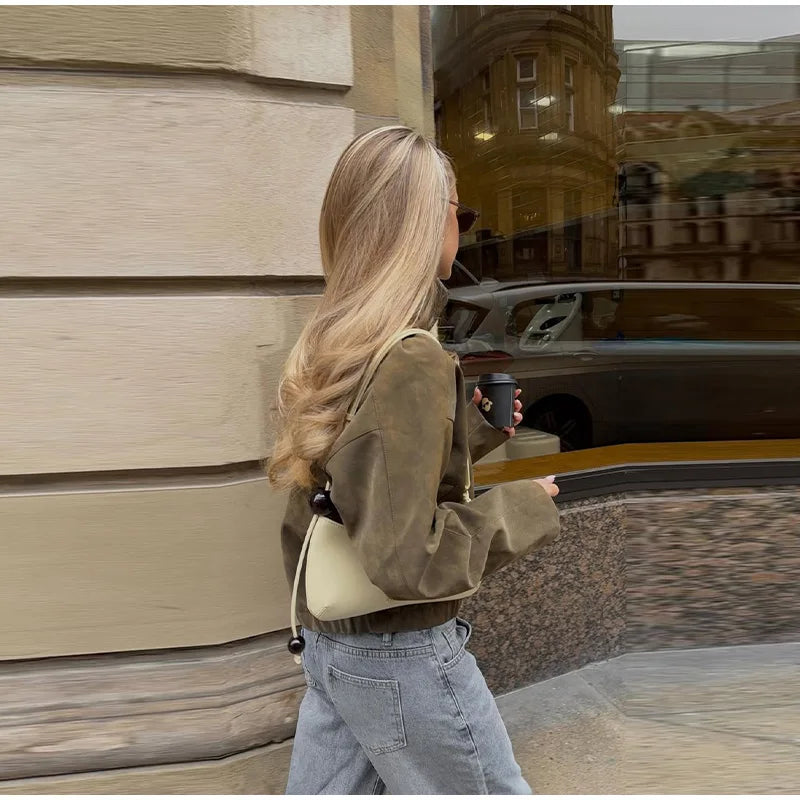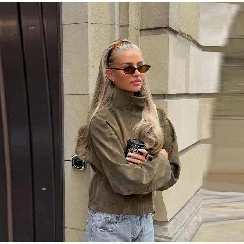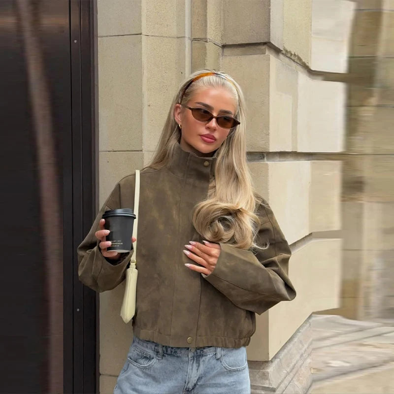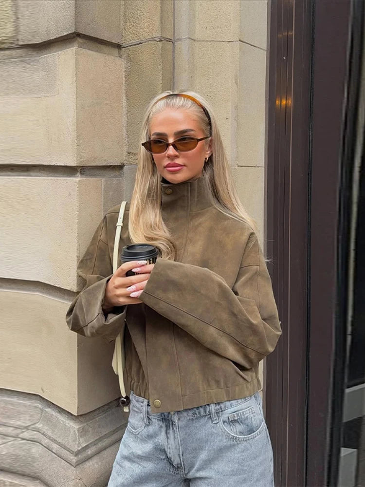 2026 Spring New Long Sleeve Bomber Jackets For Women Elegant Solid Stand Collar Short Coats High Street Chic Lady Outerwear